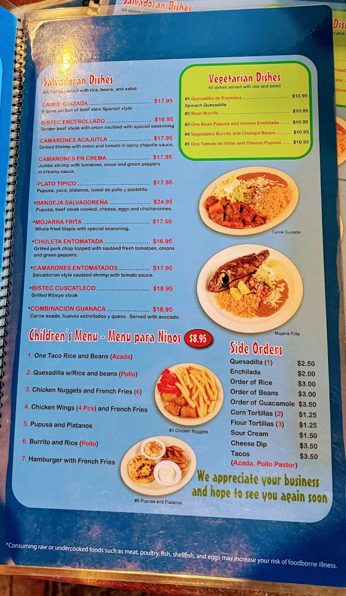 El Cuscatleco, nestled in Durham, NC, offers a vibrant journey through Salvadoran and Latin American flavors, with European and Mexican influences enriching the experience. The menu highlights authentic dishes like sizzling fajitas—shrimp, beef, chicken, or flavorful combos—served with fresh tortillas, pico de gallo, guacamole, and salad. Botanas, a perfect starter, combine shrimp, grilled meats, cheese, and savory pork rinds, showcasing a delightful blend of textures and tastes.